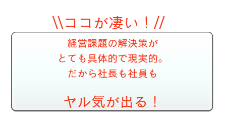 他者の成功事例や取り組みを見聞きするにつれ、うちも何か手を打たなければと考えたことが一度はあるはず。しかし社長一人では、課題を見つけるだけでもひと苦労。誰かに相談したくても、その誰かが思いつかない・・・。そんな時は当担当者とともに『明快経営』を活用してください。